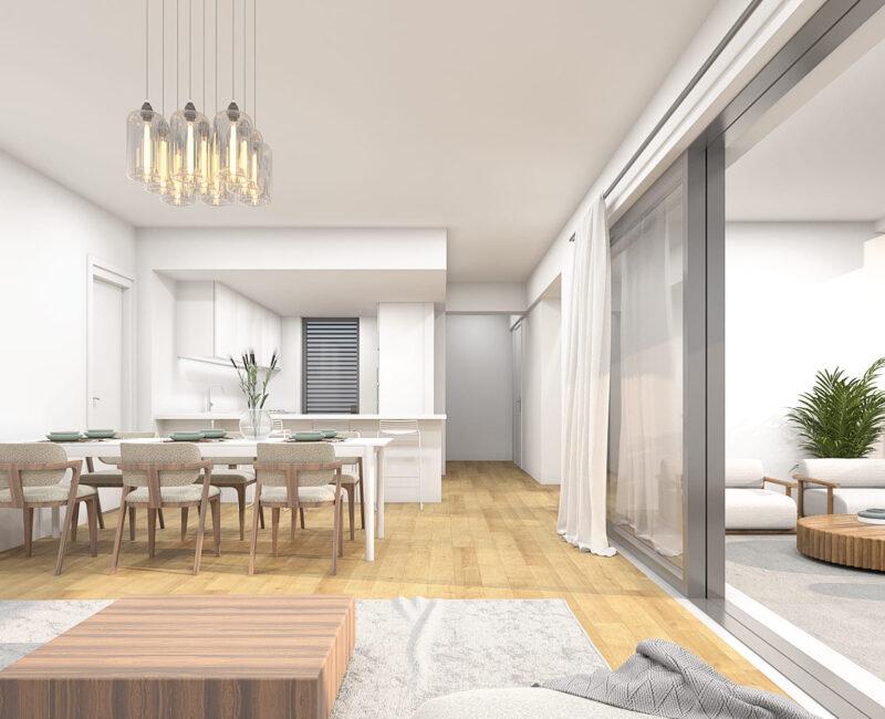 Ιn line with MIA Developments’ signature approach, the project expresses an urban and robust aesthetic, complete with comfortable layouts and generous outdoor spaces. Finally, the building will achieve an A+ energy class and follow company standards in terms of materiality and MEP infrastructure, including underfloor heating, fan-coil cooling, heat pumps, solar water heaters and photovoltaic panels. Every unit comes with a parking spot and storage space.