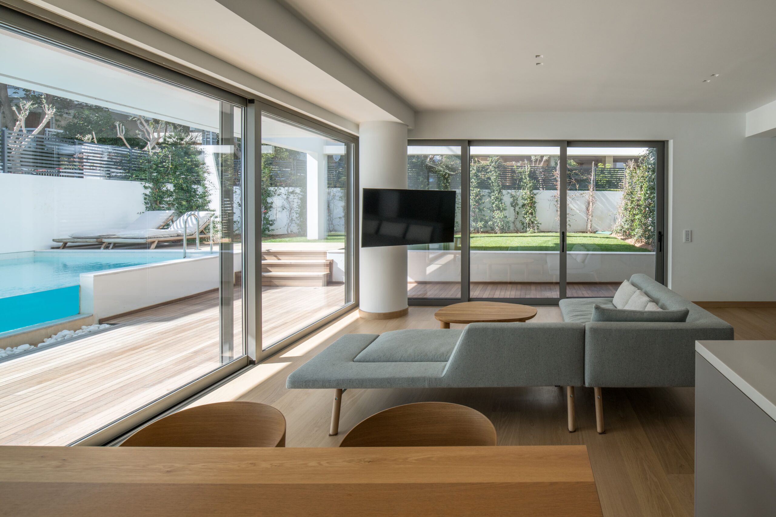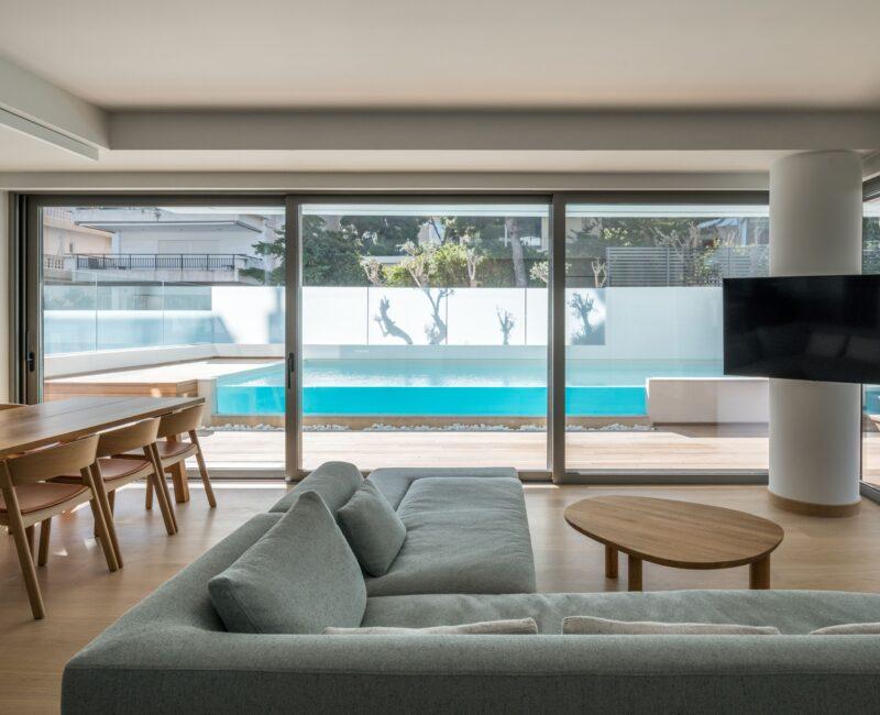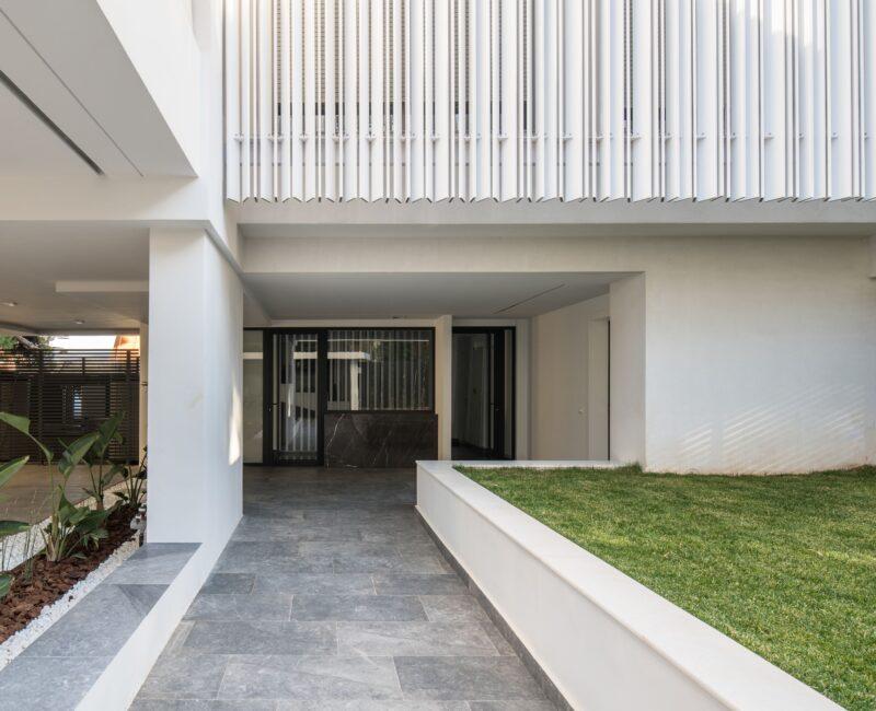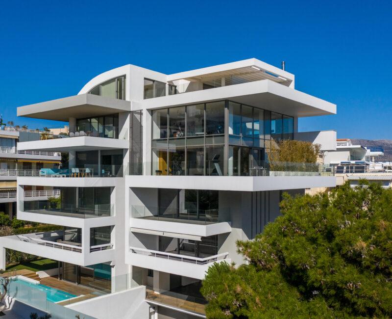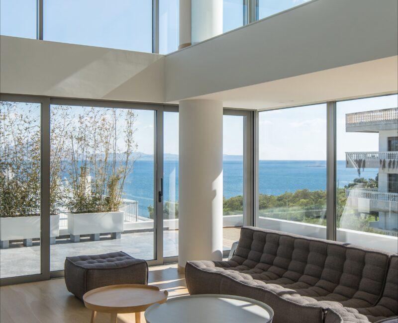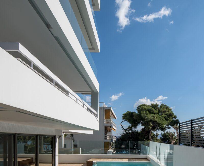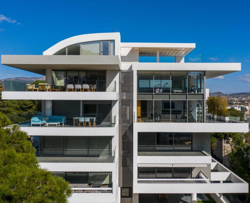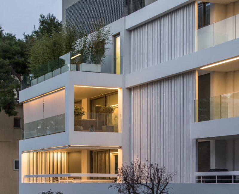 An emphasis is given to maximize the sea view advantage by creating wide openings leading to large balconies consolidating indoor and outdoor areas and expanding the livable area most time of the year. Moreover, the design has been made with special care to preserve the privacy of each apartment by ensuring there is no visibility from one to the other apartment. The energy efficiency design of the residences was based on the principles of cost savings and high performance. This ground and rooftop garden enhance the creation of a microclimate for the site itself, while making the building a landmark for the neighborhood. The building is designed in such a way to address a variety of different users and is consisting of 3 Maisonettes and 7 Apartments